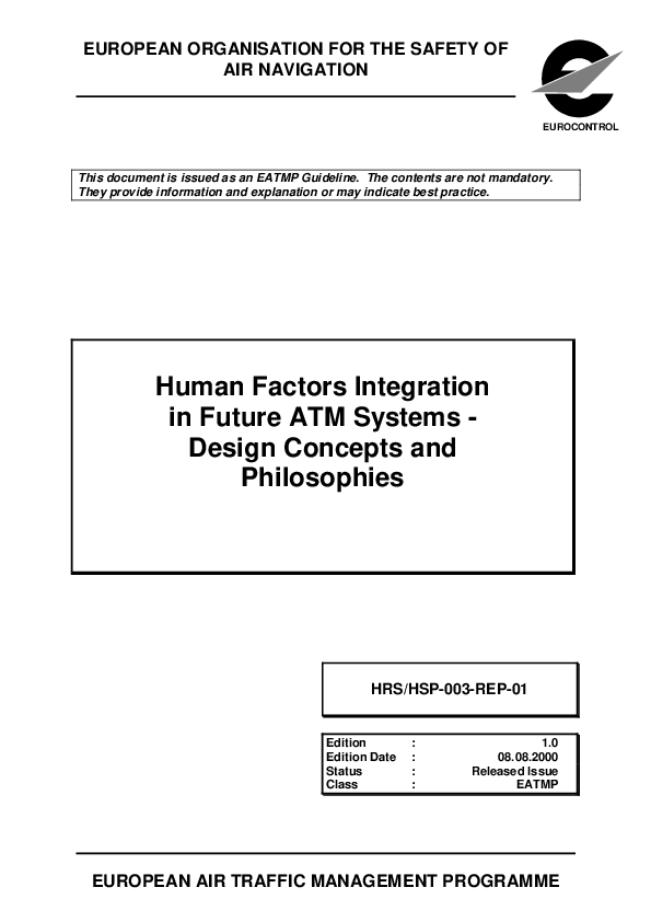 Human Factors Integration in Future ATM Systems - Design Concepts and Philosophies