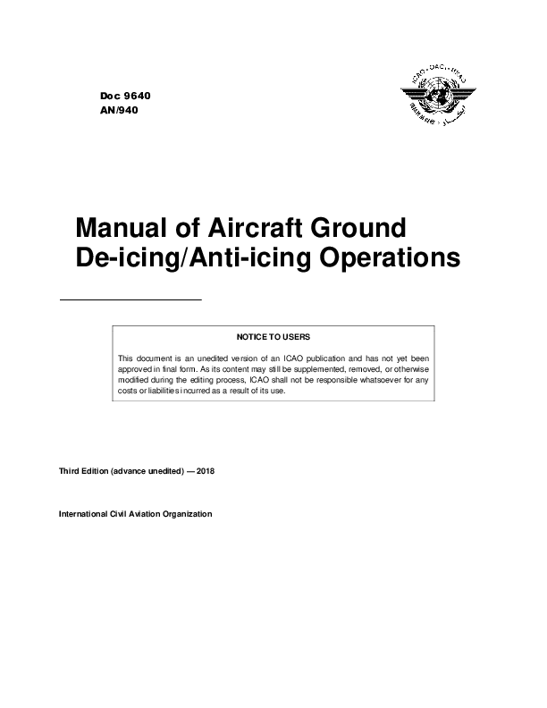 ICAO Doc 9640: Manual of Aircraft Ground De-icing/Anti-icing Operations, 3rd edition (unedited)