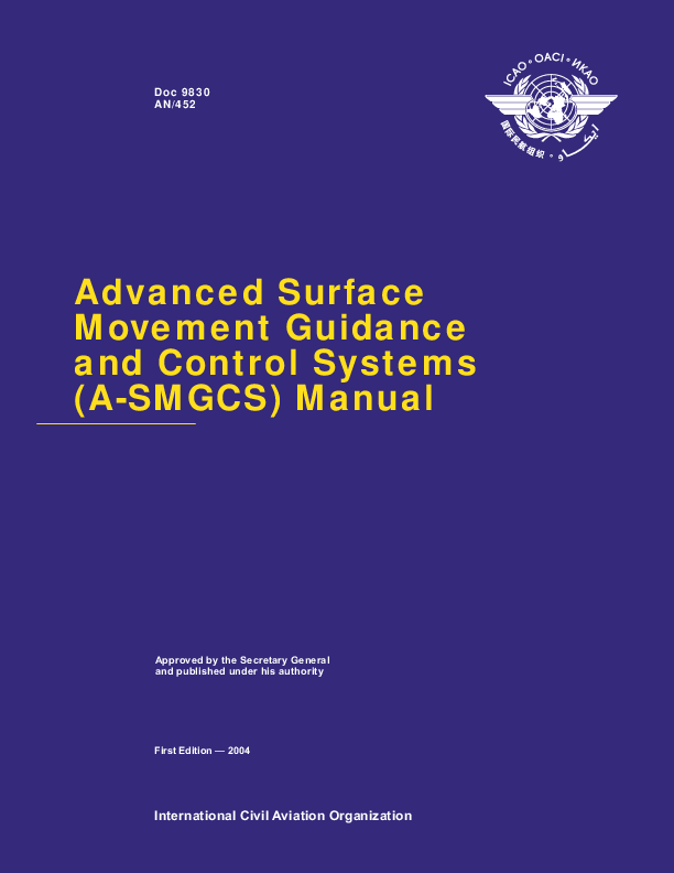 The document explains the A-SMGCS concept and contains generic operational and performance requirements. This manual is intended as guidance to enable manufacturers and operators, as well as certifying authorities, to develop and introduce A-SMGCS.
