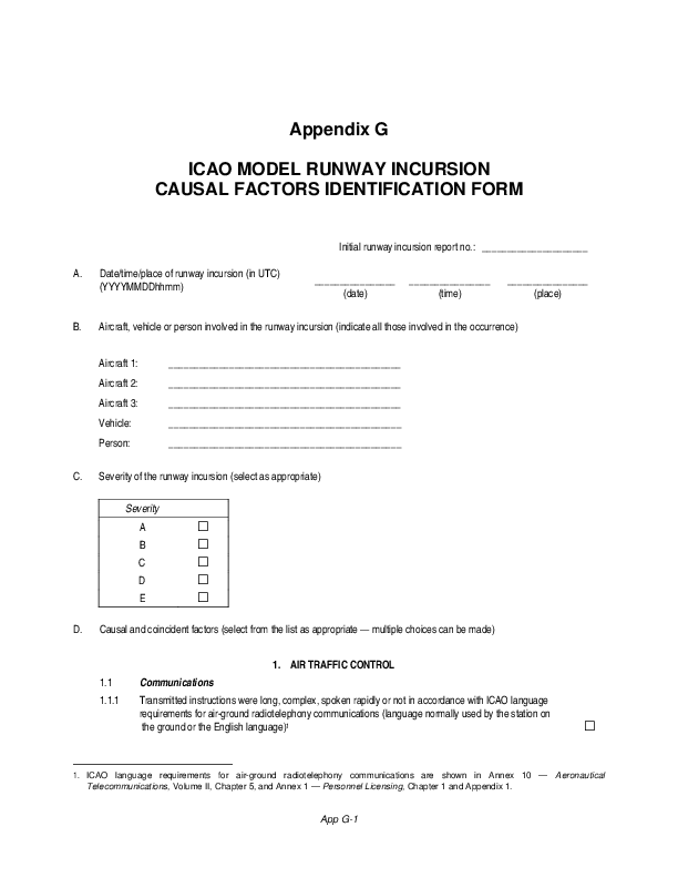 ICAO Doc 9870 App G - ICAO Model Runway Incursion Causal Factors Identification Form