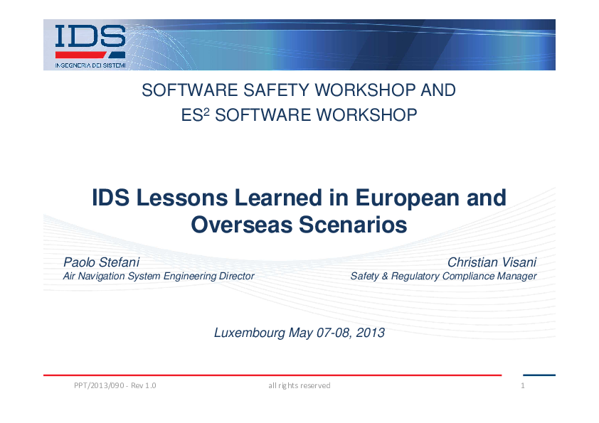 IDS Lessons Learned in European and Overseas Scenarios