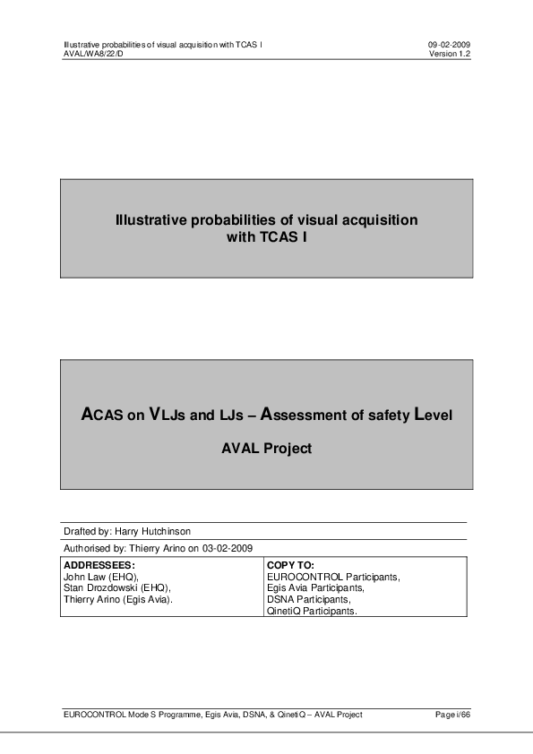 This report concentrates on the probability of flight-crew visually acquiring an intruder (the ‘see’ component of see-and-avoid). An assessment of the efficacy of manoeuvres in response to visual acquisition (the ‘avoid’ component) will form the subject of another report within the AVAL project.