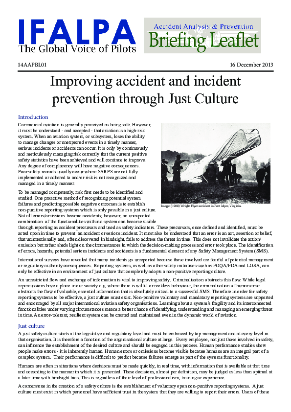 IFALPA's guidance material on improving accident and incident prevention through Just Culture