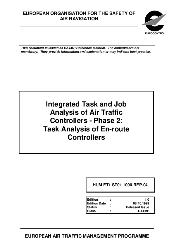 Integrated Task and Job Analysis of ATCO - Phase 2: Task Analysis of En-route Controllers
