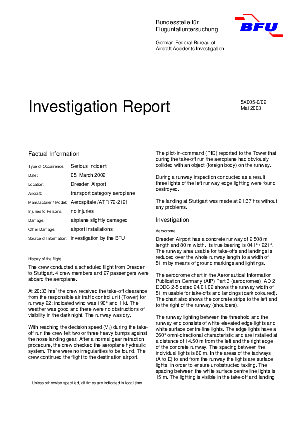 Investigation Report 5X005 - 0/02 AT72, Dresden Germany, 5 March 2002