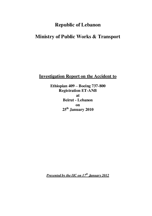 Investigation Report on the Accident to Boeing 737-800, Loss of Control near Beirut, 25th Jan. 2010
