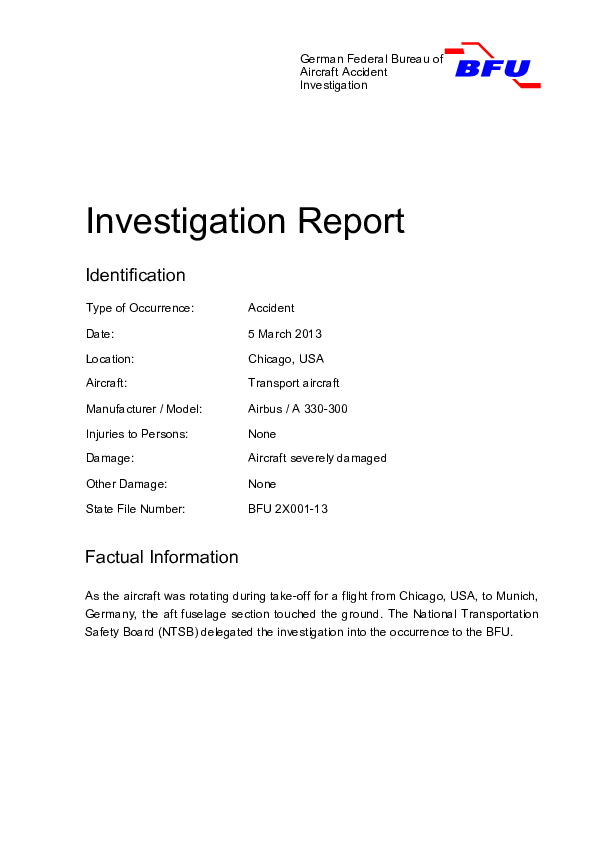 Investigation Report BFU 2X001-13 Tailstrike A333 Chicago O'Hare USA 2013