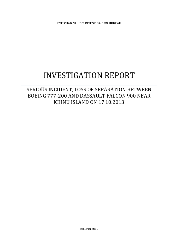 Investigation Report LOS F900 / B772 en route near Kihnu Island Estonia, 17 Oct 2013