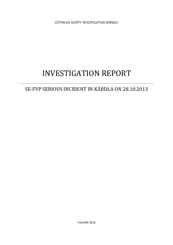 Investigation Report Serious incident JS31 (SE-FVP) in Kärdla Estonia on 28.10.2013