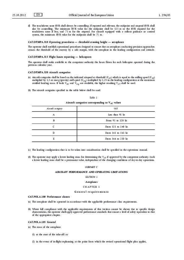 CAT - Performance & Limitations - Aeroplanes