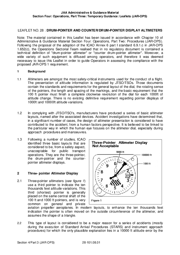 Background information regarding the use of barometric altimeters having different displays. This TGL has now been withdrawn but it's contents may still be relevant