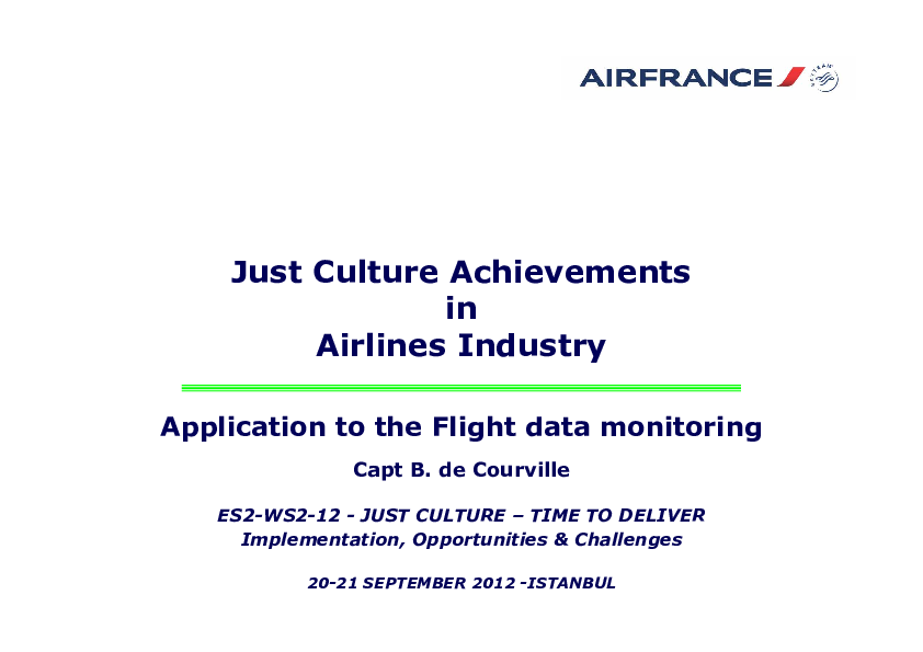This presentation's aim is to introduce the FDM safety tool (Fight Data Monitoring), which helps in establishing mutual trust between crew support and management support and also by application of Just Culture to the use of FDM data.