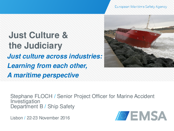 This presentation shows the maritime perspective on the investigation of marine causes and reporting issues, as well as their collaboration with Judicial Authorities.
