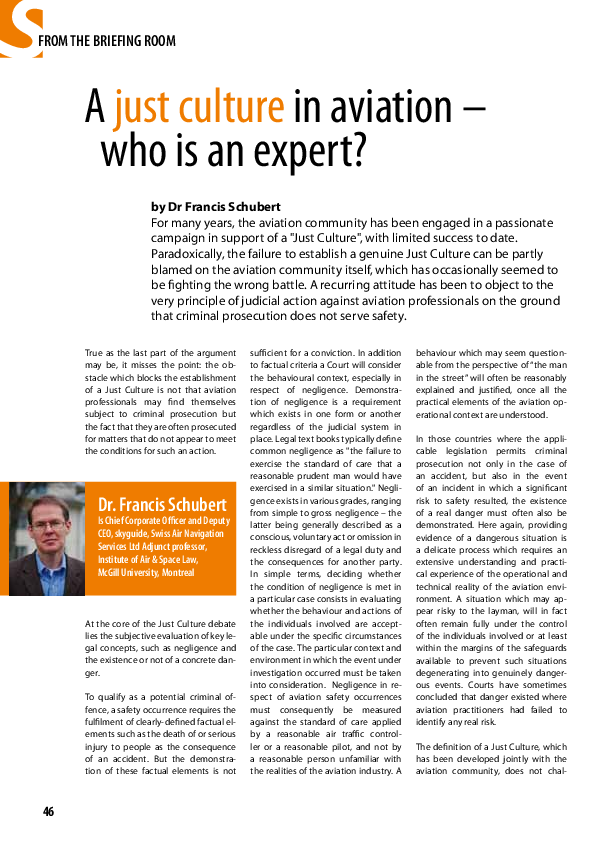 A just culture in aviation - who is an expert?