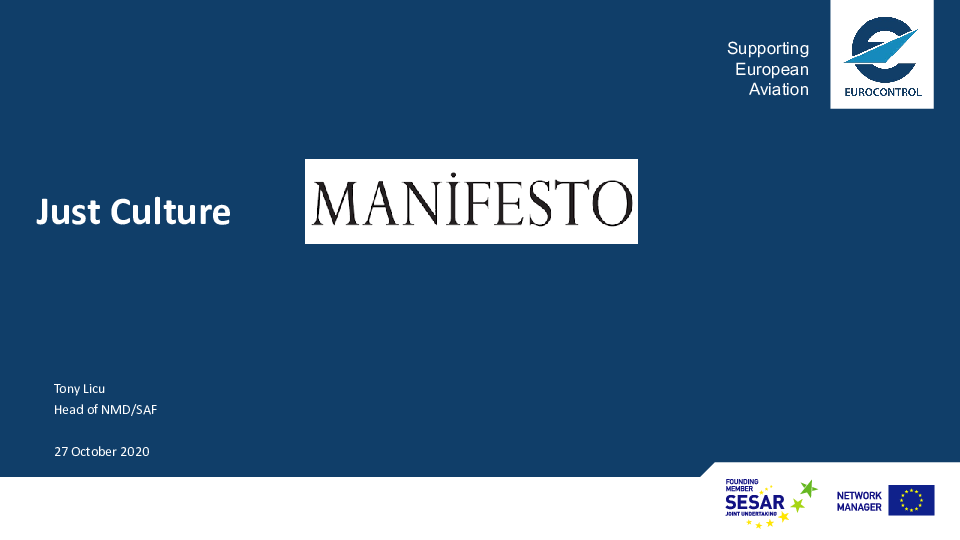This presentation is dedicated to the Just Culture Manifesto and its objectives and principles.