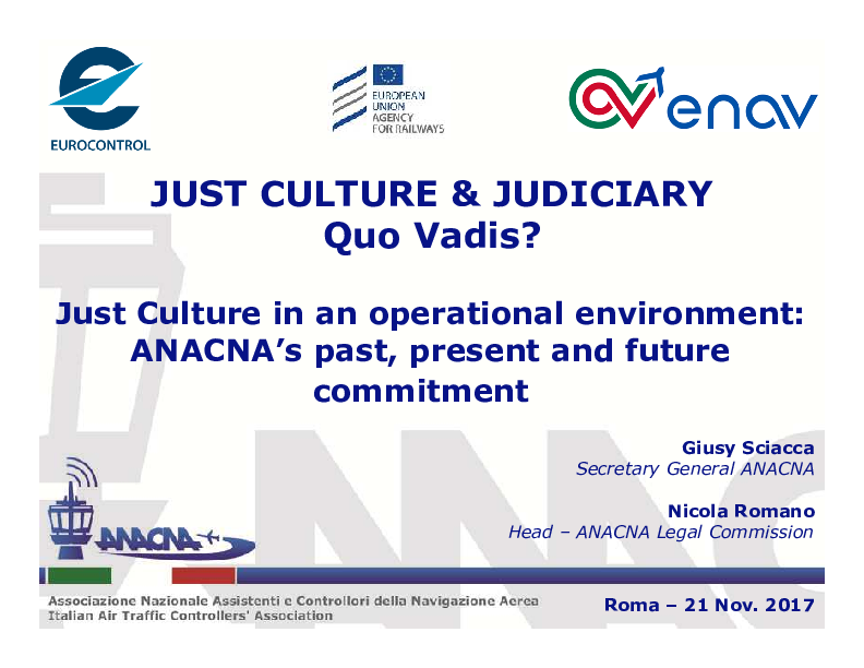 This presentation shows Just Culture in an operational environment: ANACNA's past, present and future commitment.