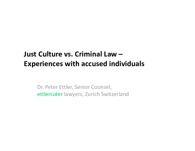 Just Culture vs. Criminal Law- Experiences with Accused Individuals