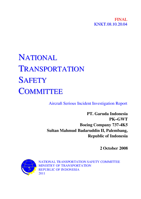 KNKT.08.10.20.04, B734 taxiway landing, Palembang Indonesia, 2 Oct 2008