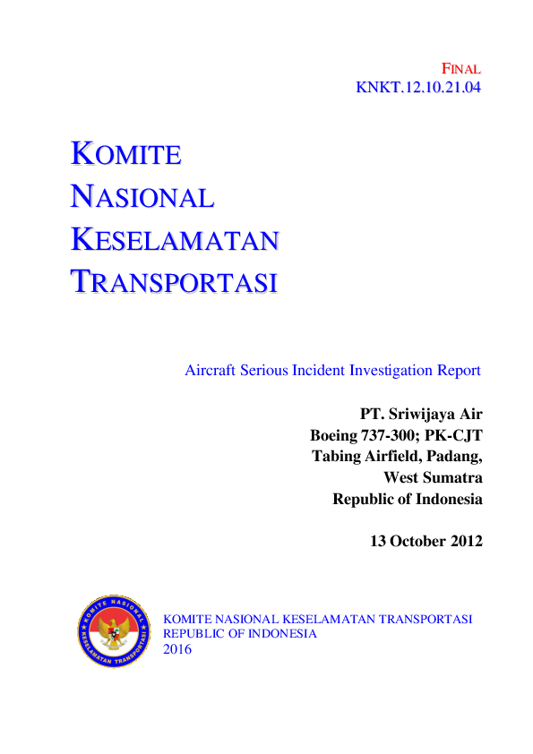 KNKT.12.10.21.04 Final Report B733 (PK-CJT) wrong airport Tabing Indonesia, 13 Oct 2012