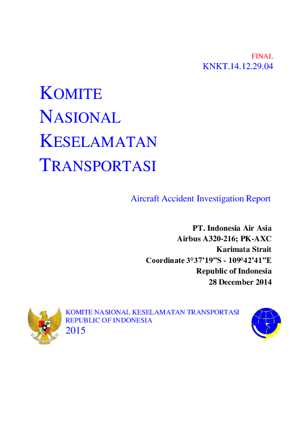KNKT.14.12.29.04, PT. Indonesia Air Asia Airbus A320-216; PK-AXC Karimata Straight