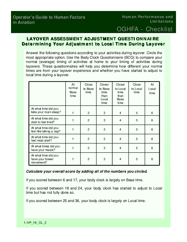 This questionnaire will help pilots determine how different their normal times are from layover experience and whether they have started to adjust to local time during a layover.