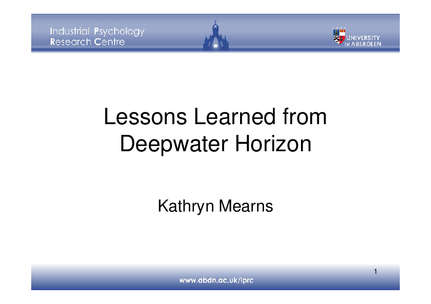 This presentation is a mini case-study of Deepwater Horizon disaster and focuses on lessons to be learned from the case.