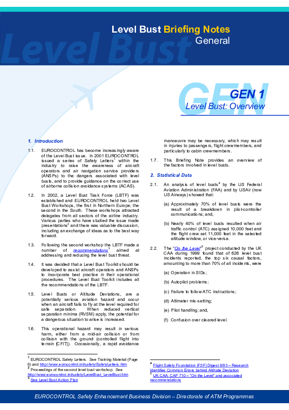 Level Bust Briefing Note Gen 1 - Level Busts: Overview