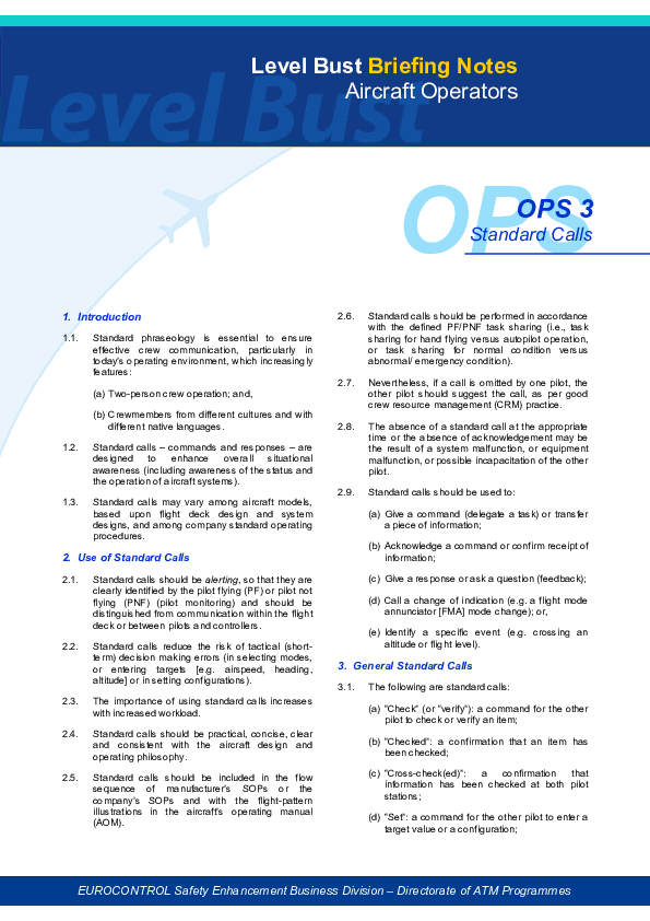 Level Bust Briefing Note Ops 3 - Standard Calls