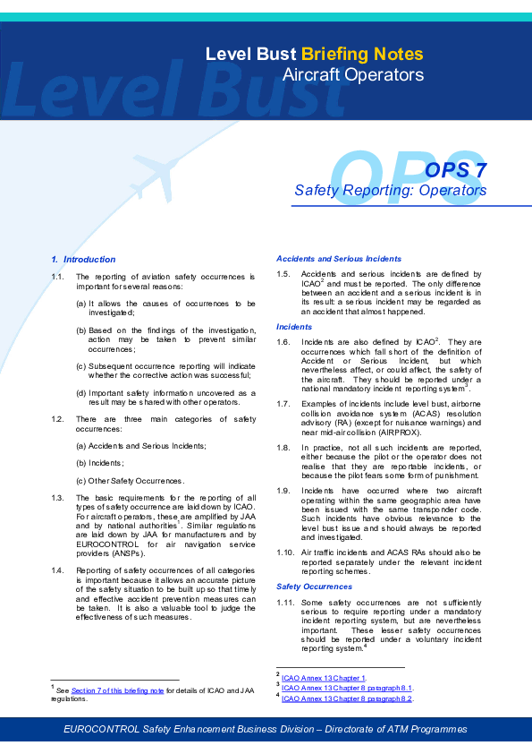 Level Bust Briefing Note Ops7 - Safety Reporting: Operators