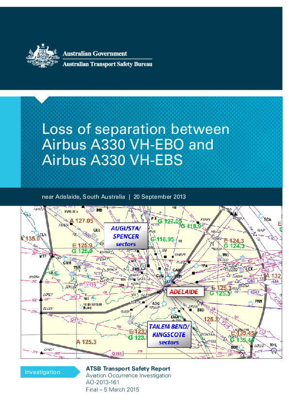 On 20 September 2013, a loss of separation occurred between two en route Airbus A330s under radar surveillance in controlled airspace near Adelaide. The potential conflict was resolved with TCAS RA action by one of the aircraft involved but the TCAS equipment on board the other aircraft appeared to have malfunctioned and did not display any traffic information or generate an RA. The complex pattern of air routes in the vicinity of the event was identified by the Investigation as a Safety Issue requiring resolution by the ANSP and the response subsequently received was assessed as satisfactory.