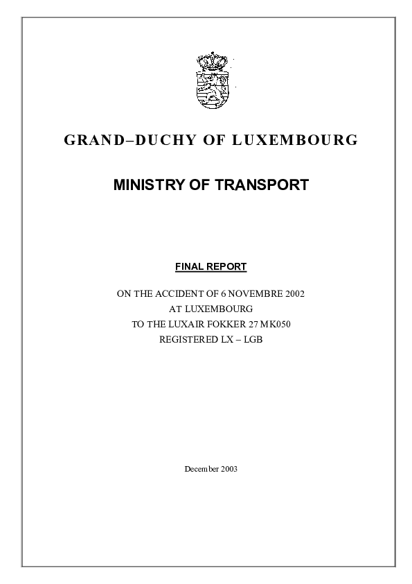Luxembourg MoT Accident Report: Luxair F50 LOC