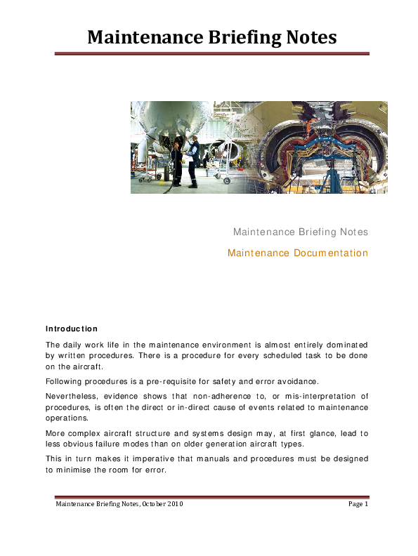 Maintenance documentations in this context includes manufacturers documentation, customized job instruction cards, and documentation issued by the regulators. We will see in this Maintenance Briefing Notes that the failure to follow procedures, is an important contributor to incidents, or even accidents.