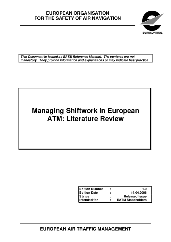 Managing Shiftwork in European ATM: Literature Review