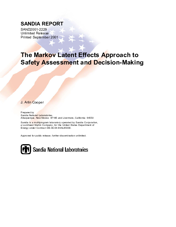 The methodology in this report addresses the safety effects of organizational and operational factors that can be measured through “inspection. The investigation grew out of a preponderance of evidence that the safety “culture (attitude of employees and management toward safety) was frequently one of the major root causes behind accidents or safety-relevant failures. The approach is called “Markov latent effects analysis.