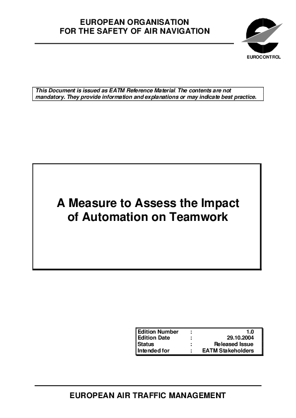 This report proposes a validated approach on how to assess the impact of automation on teamwork. On the basis of a literature review the latest research results on teamwork and its measurement are described.
