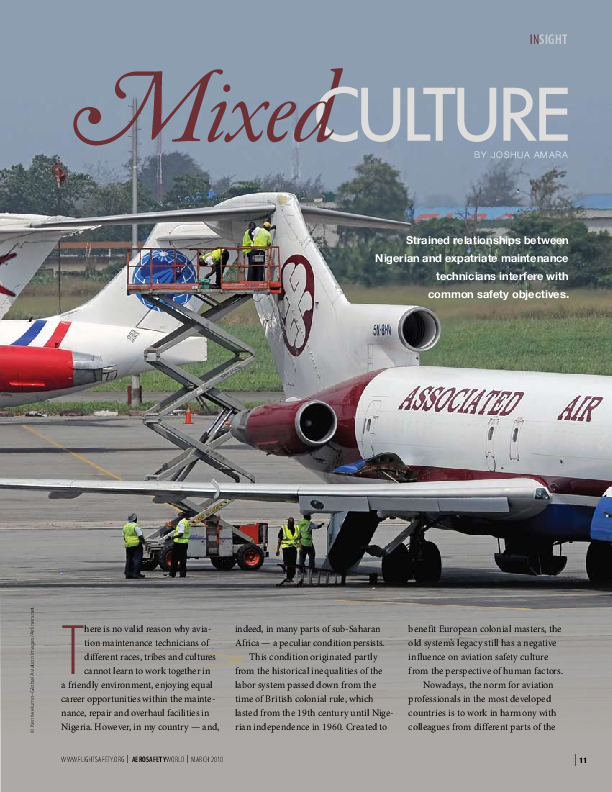 Article from AeroSafety World on the strained relationship between Nigerian and expatriate maintenance tehnicians and how it interferes with the common safety objectives