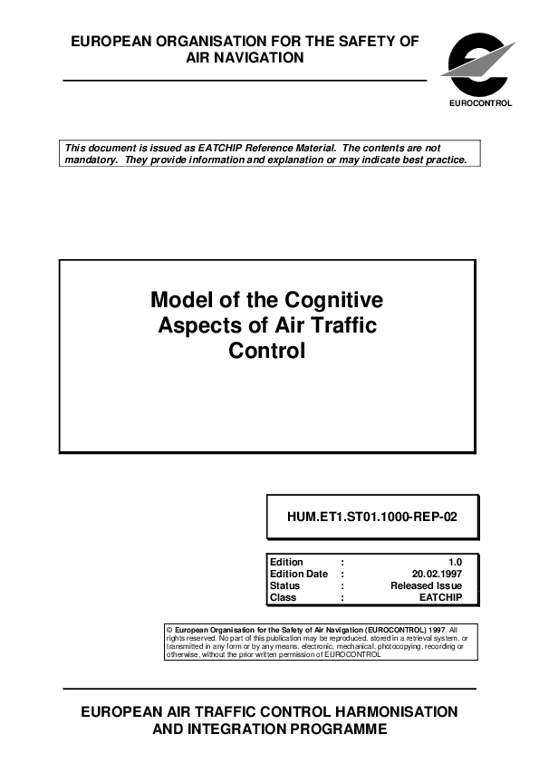This document is a report on the development of a Cognitive Model for Air Traffic Control (ATC) which has been contracted out to the Institute of Evaluation Research (InstitutfürBegleitforschung, IFB) by the Human Resources Domain of the European Air Traffic Harmonisation and Integration Programme (EATCHIP). It is intended to provide the reader with a basic understanding of the cognitive processes involved in ATC and will be useful to those involved in training, selection, automation, task analysis and job design for ATC.