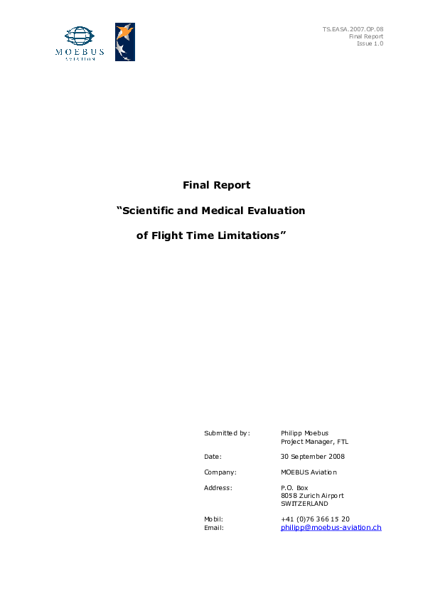 MOEBUS Aviation Final Report: Scientific and Medical Evaluation of Flight Time Limitations