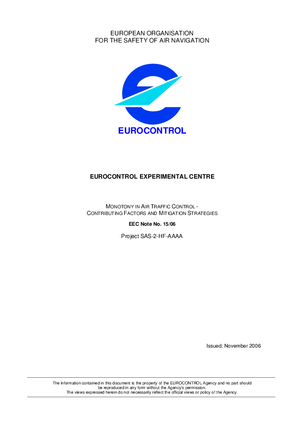 This report discusses the role of monotony in Air Traffic Control (ATC). Despite its obvious relevance as a critical individual state in air traffic controllers, monotony has not been well researched in the past. To describe evoking and contributing factors, distinguish similar critical states such as fatigue and satiation, and define countermeasures, three experimental studies were conducted with a total of 32 air traffic controllers (ATCO) in the simulated and ten ATCOs in an operational air traffic control environment.
