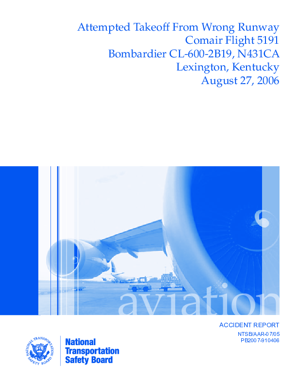 NTSB - AAR-07/05 CL60 Attempted take-off from wrong runway, Lexington, KY, 27 Aug 2006
