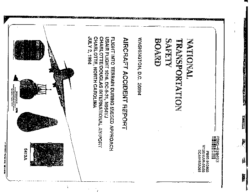 NTSB - AAR-95/03, DC9 Flight into Terrain During Missed Approach, Charlotte NC, 2 July 1994