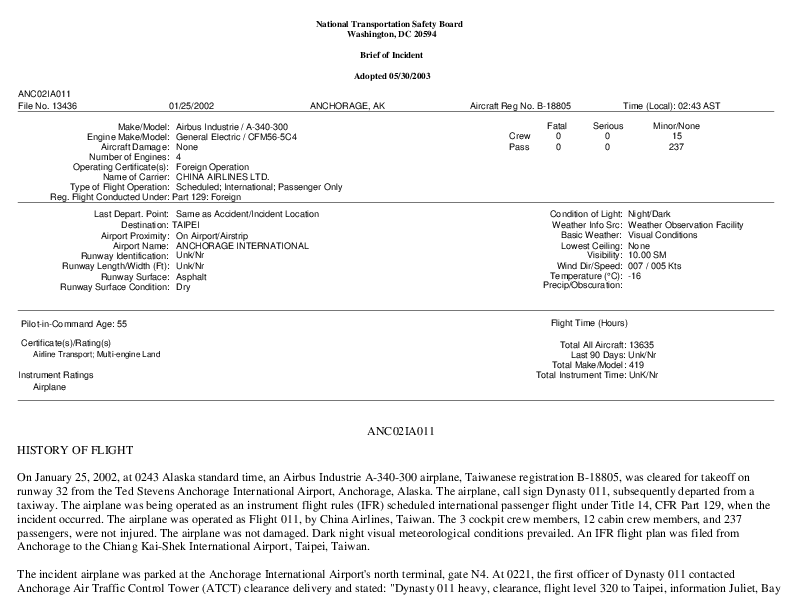NTSB - ANC02IA011 A343 Parallel taxiway take-off, Anchorage AK, 25 Jan 2002