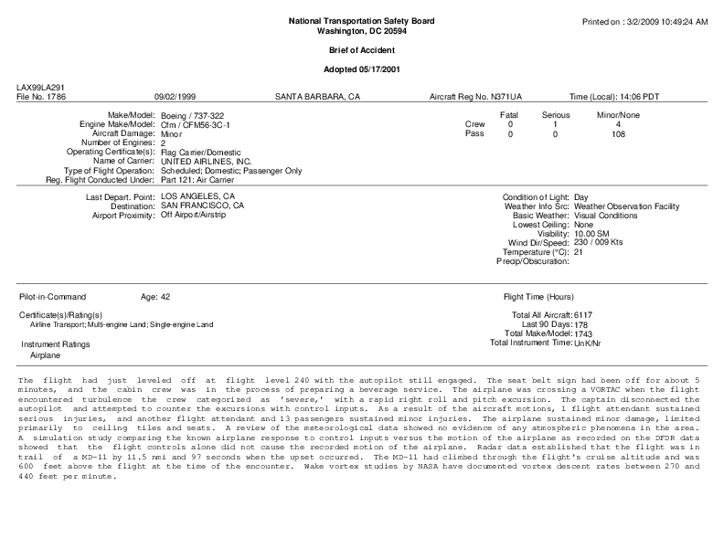 NTSB - Brief of Accident LAX99LA291 B733 WAKE incident