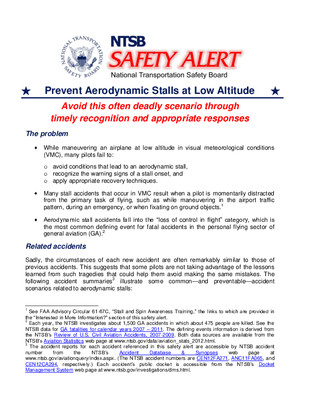 NTSB Safety Alert 19 - Prevent Aerodynamic Stalls at Low Altitude
