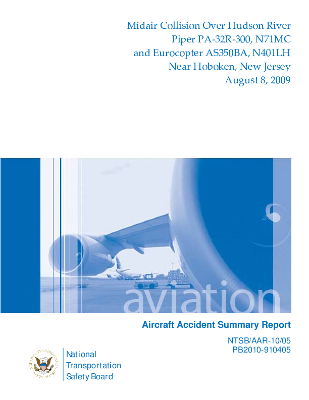 NTSB/AAR-10/05, AS50 and PA32 mid-air collision, Hudson River, Hoboken NJ USA, 8 Aug 2009