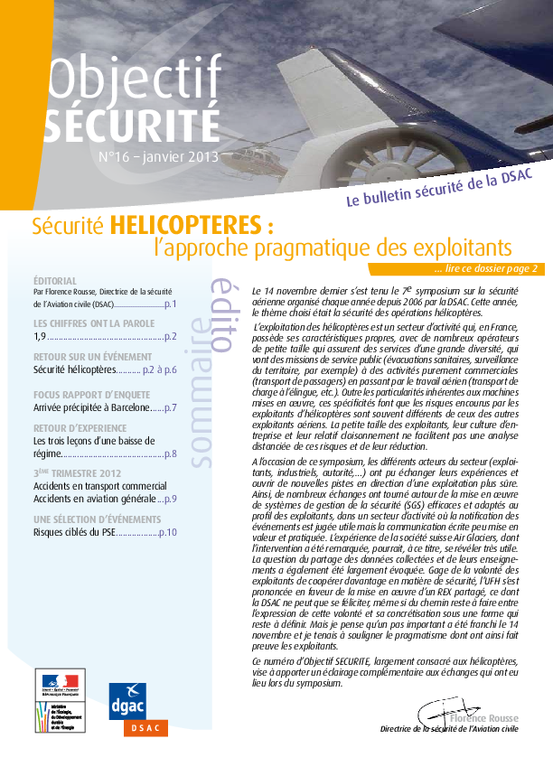 16th edition of Objectif Securite focused on Helicopter safety and published in January 2013
