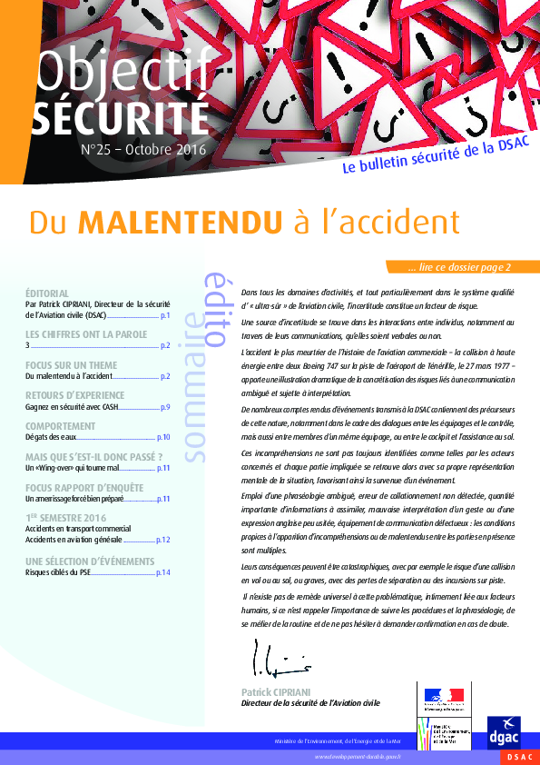 Objects SECURITE 25: from misunderstaning to accident