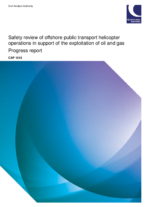 In February 2014, the CAA published a Safety Review (‘the Review’) of offshore helicopter operations. The Review examined the risks to helicopter operations to support the oil and gas industries in and around the North Sea. It identified a wide range of opportunities to improve the safety of those operations and in particular to increase the chances of passengers and crew surviving an accident. This report provides an update on progress against those actions and recommendations as at 31 December 2014.