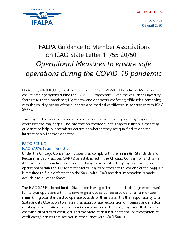 Operational Measures to ensure safe operations during the COVID-19 pandemic