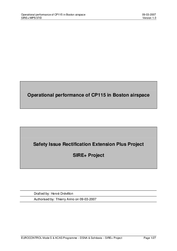 This report investigates the operational behaviour of CP115 in the Boston TMA airspace, based on radar and RA downlink data provided by the FAA, and answers the specific question of whether the introduction of CP115 can induce conflicts with third parties in a US TMA.